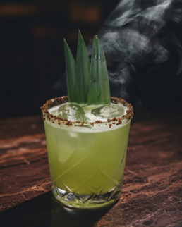 - Pour in Mezcal Coyotero, pineapple juice, lime juice, and simple syrup.